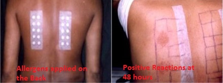 Patch Test is a simple test in which aluminium chambers containing the extracts of common allergens is applied on your back. Readings are taken at 48 and 96 hrs, if you are allergic to a particular substance a small rash will appear at the corresponding area, hence, the offending allergen is identified.