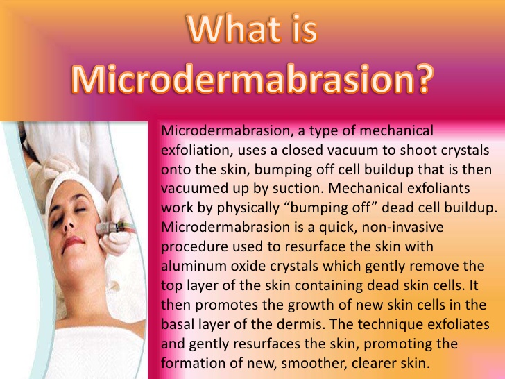 Micro-Dermabrasion is safe on any skin color or type. During the treatment, micro-crystals are sprayed out and vacuumed up through a hand piece held at a precise angle to the skin. This results in a gentle to more aggressive abrasion of the top layers of skin, depending on the desired result or goal. Treatments usually last approximately ten to thirty minutes and can be done on any part of the body.